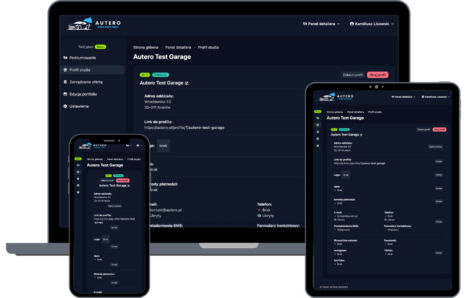 - Dostęp do panelu detailera, gdzie można zarządzać ofertą